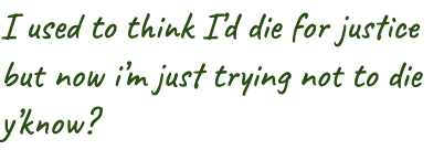 I used to think I’d die for justice but now i’m just trying not to die y’know?